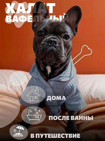 Халат для собак вафельный темно-синий