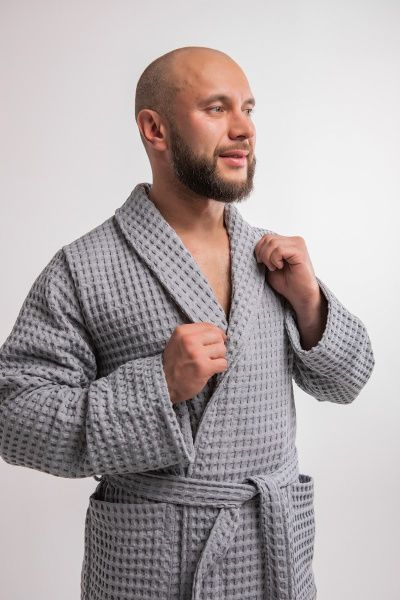 Халат вафельный PandaHug Оrlando серый с капюшоном