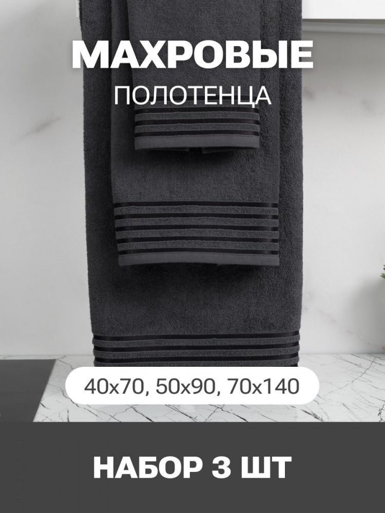 Набор Полотенец махровых PandaHug Cozy Stripe темно-серое 140х70, 90х50, 40x70 пл. 400 гр м2