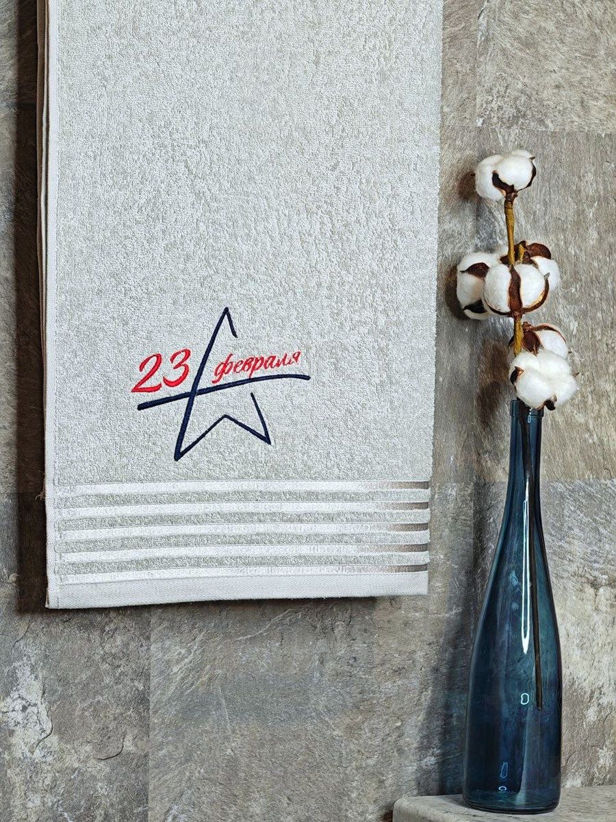 Полотенце с вышивкой 70*140 "23 февраля" светло-серое