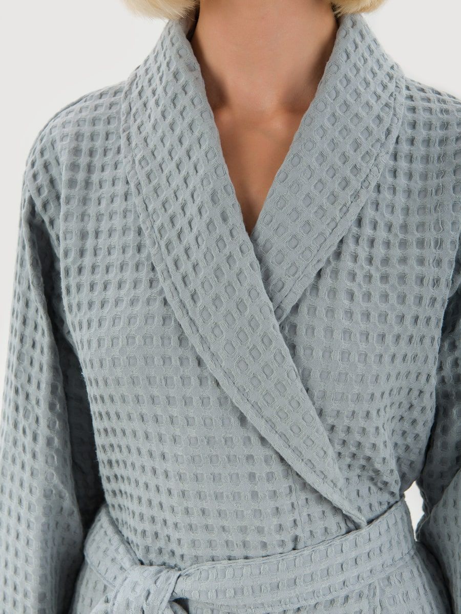 Крупная клетка халата даёт возможность коже лучше дышать, так как охватывает больше воздуха, а волокна ткани максимально гигроскопичны.
