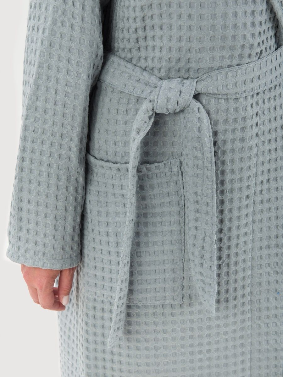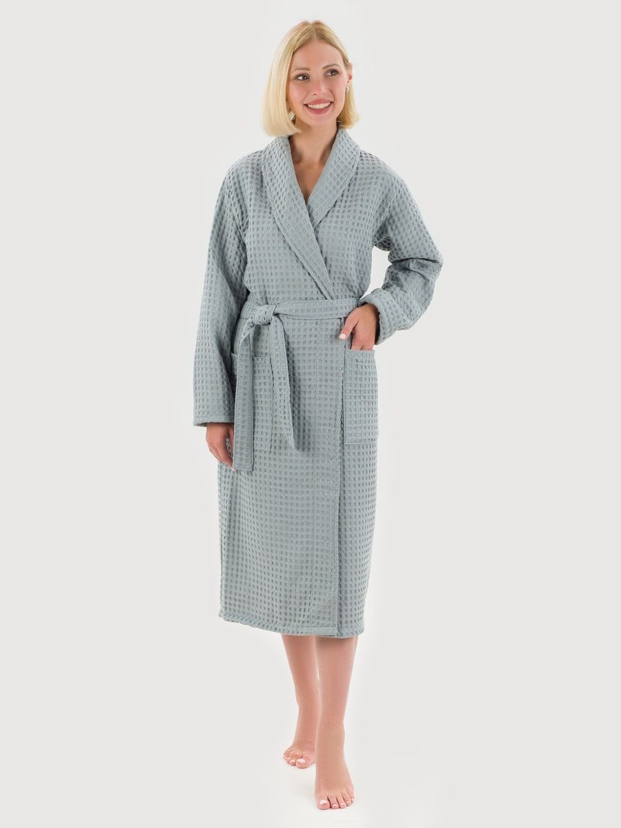 Вафельный халат «Комфорт» в крупную клетку с карманами и пояском. Благодаря высочайшему качеству ткани, халат не растягивается, очень прочен и обеспечивает максимум комфорта.