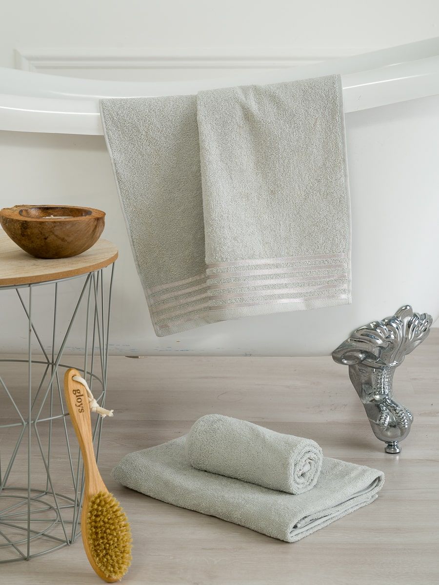 Махровое полотенце для душа нейтрального светло-серого цвета с отделкой в виде атласных полос. Оно приятно не только внешне, но и на ощупь: мягкое, теплое, комфортное. Плотно расположенные петельки махры быстро высушат и согреют кожу после водных процедур. А благодаря универсальному цвету и размеру такое махровое полотенце подойдет всей семье. Полотно изготовлено в Узбекистане , который издавна славится производством махровых изделий высочайшего качества. В составе ткани 100% хлопок, что гарантирует высокую впитываемость, экологичность и гипоаллергенность изделия. Полотенце обладает высокой износостойкостью и не требует особого ухода. При соблюдении условий стирки оно не деформируется и не теряет цвет, сохраняя свой первоначальный вид долгие годы.
