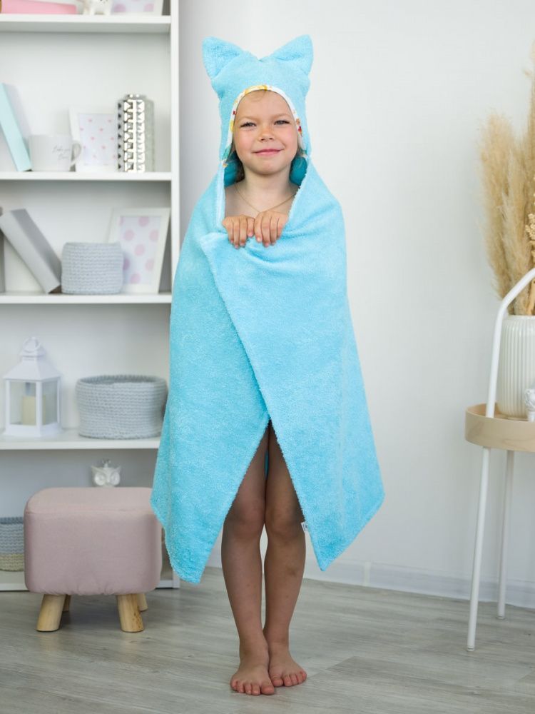 Накидка детская с капюшоном "КОТИКИ" 110*70 см, голубой
