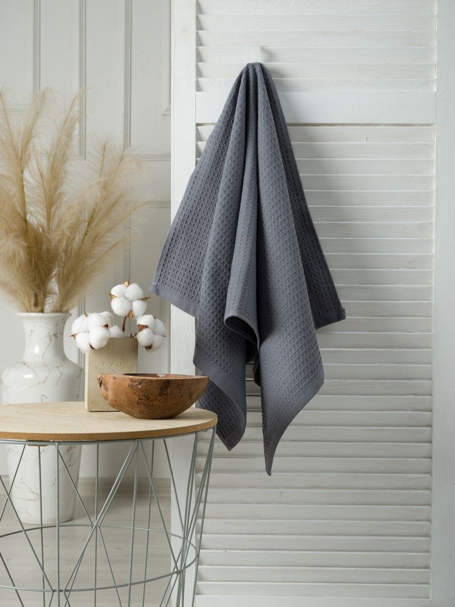 Полотенце вафельное серое