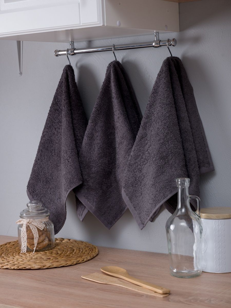 Набор махровых полотенец 3 шт (40*70) темно-серый